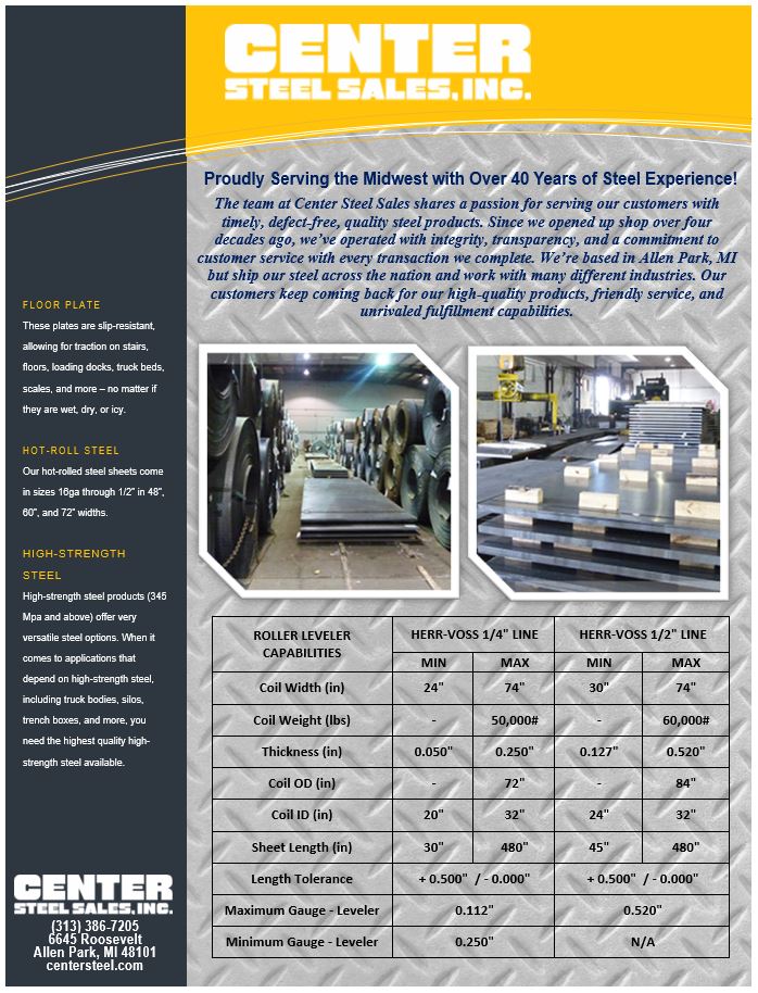 View our documentation to see the ways Center Steel Sales differentiates itself from the competition.